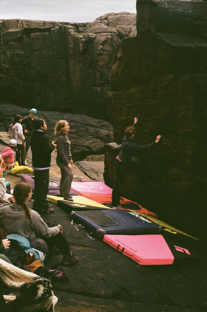 Climbing is often framed as an individual pursuit, but it’s deeply social. When you climb with people, you build relationships based on trust, mutual support, and being seen while you try hard and sometimes fail. In mainstream climbing spaces, those dynamics can be shaped by competition or unspoken hierarchies that don’t always leave room for women, trans, and non-binary climbers to feel safe taking up space. The friendships I’ve built through climbing have developed out of care, shared vulnerability, and turning up for each other without expectation.